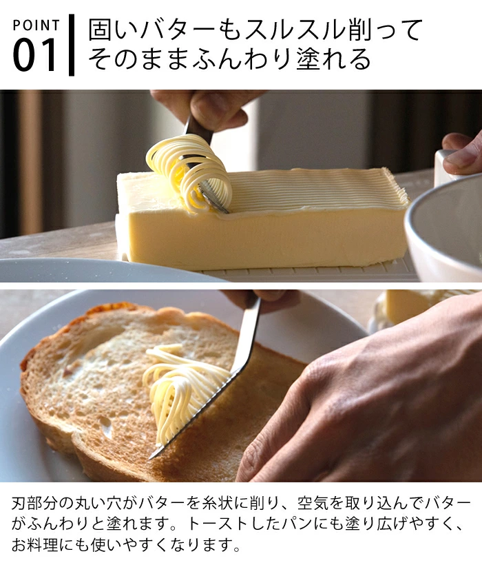 冷たいバターも、ふんわり糸状に。軽い力でスッと塗れる、新感覚のステンレスバターナイフ。