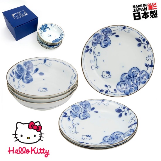 🔥🔥【日本製《HELLO KITTY》藍玫瑰碟碗套裝】6隻裝 🇯🇵🇯🇵日本製造🇯🇵🇯🇵 Hello Kitty 藍玫瑰碟碗套裝 以藍色玫瑰圖案設計,採用傳統藍染風格呈現寧靜日式風貌,五寸碟及多用碗各三件組成,提供日常用餐所需,適合盛載飯菜或小食。碟面平滑易於放置食物,碗身適中深度避免溢出,電子範圍及洗碗機適用確保清潔方便,套裝注重實用性與可愛元素結合,適用於家庭聚餐或個人使用,提升用餐氛圍👍🏻 碟 ~ 16.5 闊 x 2.5cm 高 碗 ~ 15.5 闊 x 4.5cm 高 材質:瓷器(美濃燒) 重量:1.4kg 產地:日本 🇯🇵日本直送約3-4星期 ___________________________________________ 💬 唔想錯過最新產品資訊及優惠歡迎加入我哋Whatsapp群組: https://chat.whatsapp.com/IJFfq1i7kMz46Zjc1NSXQF ___________________________________________