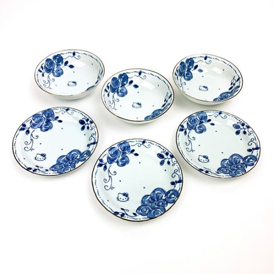 【現貨】🔥🔥【日本製《HELLO KITTY》藍玫瑰碟碗套裝】6隻裝
