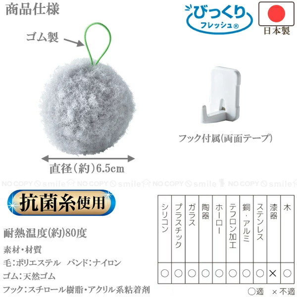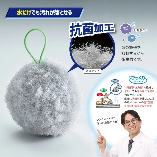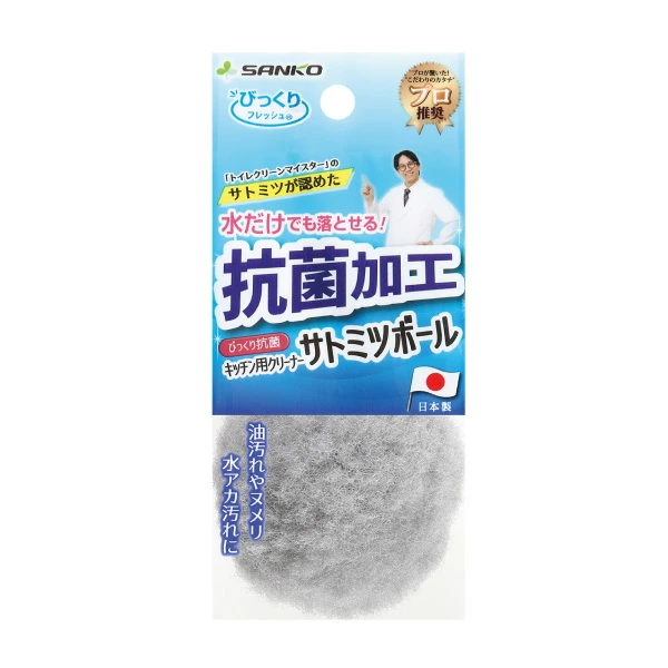 🔥🔥【日本製《SANKO》廚房抗菌清潔球】 🇯🇵🇯🇵日本製造🇯🇵🇯🇵 其特殊纖維刷面能深入清潔表面污垢,即使只用清水也能有效去除水垢、油垢與黏滑物質,不傷材質表面。 適用於不鏽鋼、鍋具、濾網、魚烤盤、洗手台等廚房設備,也可用於洗面台或日常手洗清潔。 本體為圓球造型,握感舒適,附有橡膠掛繩與掛勾,使用後可懸掛晾乾,保持清潔衛生。此產品經由日本清潔達人「サトミツ」監修,品質與實用性獲得高度評價,是日本家庭主婦與清潔達人愛用的清潔工具之一👍🏻 材質:特殊抗菌纖維、橡膠掛繩 尺寸:約直徑6cm 重量:30g 產地:日本製 🇯🇵日本直送約3-4星期 ___________________________________________ 💬 唔想錯過最新產品資訊及優惠歡迎加入我哋Whatsapp群組: https://chat.whatsapp.com/IJFfq1i7kMz46Zjc1NSXQF ___________________________________________