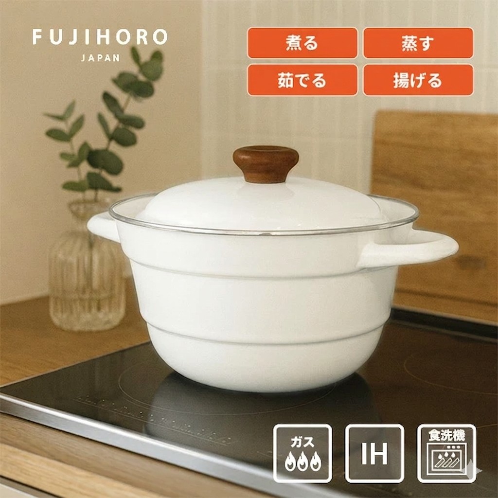 集「煮、燜、蒸、炸」四大功能於一身,是廚房裡名副其實的全能幫手。27cm 的大容量配合隨鍋附送的不鏽鋼蒸架,無論是清蒸整條大魚、燉煮老火湯,還是製作香脆的天婦羅都游刃有餘。琺瑯材質擁有極佳的導熱性與保溫力,加上表面為玻璃質構造,不易吸收食物氣味及色素,清潔極其方便,特別適合處理咖哩或茄汁類料理。其圓潤且極具質感的設計,讓料理完成後可直接端上餐桌作為盛器,既實用又美觀。鍋底厚度經過精心設計,確保熱力均勻分佈,更可對應 IH 電磁爐及煤氣爐,是一款能讓您簡化廚具數量、提升烹飪效率的高品質萬用鍋具👍🏻