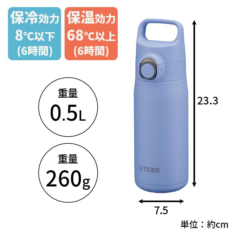 🔥🔥【日本直送《TIGER》夢重力不鏽鋼真空保溫瓶】500ML 一款兼具輕巧與實用性的日常飲水瓶,適合通勤、上學及戶外活動使用。瓶身採用TIGER獨家「夢重力」技術,以精密旋壓加工減薄內筒厚度,令整體重量僅約260克,攜帶更輕便。瓶身表面採用含珠粒的啞面塗層,即使手濕也不易滑手。內層則施以「Super Clean Plus」光滑塗層,抗污抗味,即使盛載運動飲料亦不易殘留異味。瓶蓋設有一體式密封膠圈,減少拆裝步驟,提升清潔效率。飲口可拆卸清洗,保持衛生。設有手柄設計,方便提取及掛扣,適合日常快速補水👍🏻 保溫效能:1小時約86°C以上,6小時約68°C以上 保冷效能:6小時約8°C以下 材質:瓶身為不鏽鋼,瓶蓋為塑料(含矽膠密封圈) 尺寸:約高23.3 × 寬7.5 × 深8.6厘米 重量:260g 產地:越南 日本直送約 3-4 星期 ___________________________________________ 💬 唔想錯過最新產品資訊及優惠歡迎加入我哋Whatsapp群組: https://chat.whatsapp.com/IJFfq1i7kMz46Zjc1NSXQF ___________________________________________