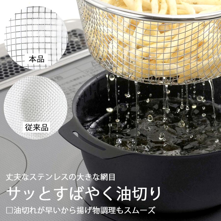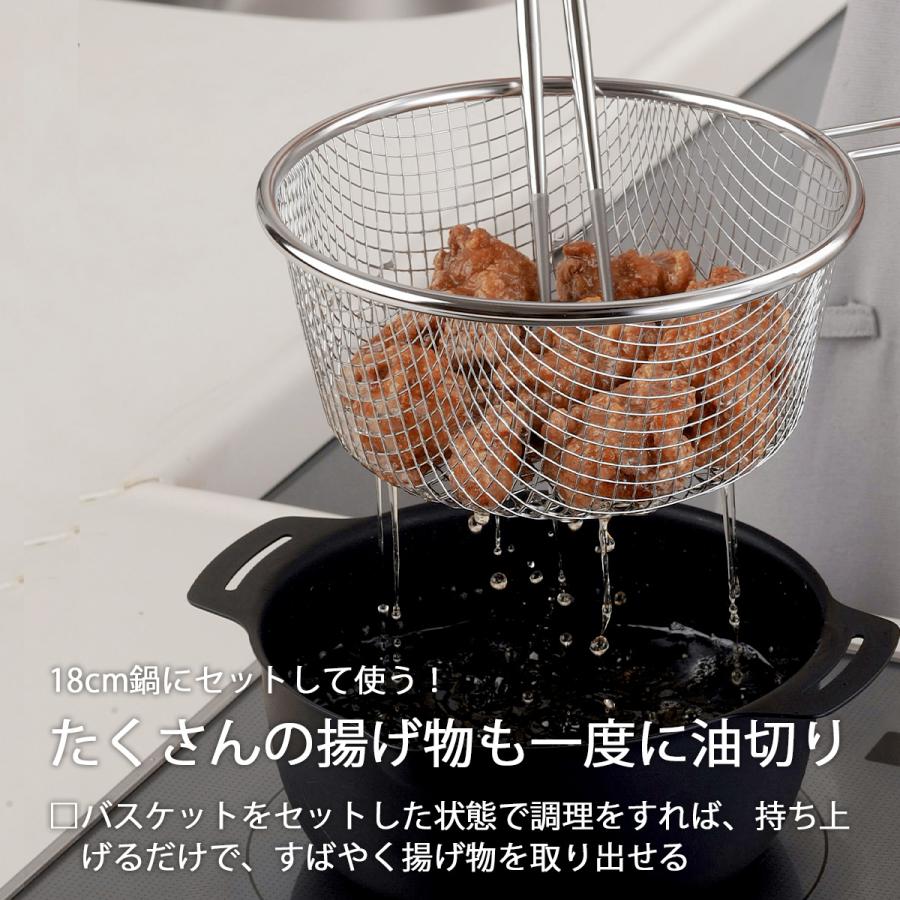🔥🔥【日本製《下村》手柄式不鏽鋼濾油水籃】 🇯🇵🇯🇵日本製造🇯🇵🇯🇵 能直接放入約 18cm 尺寸的鍋中使用,煮麵或燙菜後提起即可完成瀝水,或油炸後,只需提起籃子即可快速完成濾油,操作簡便,減少額外使用多個器皿的麻煩。產品採用 18-8 不鏽鋼製成,堅固耐用且不易生鏽,網眼設計為 4 格網,能有效濾走多餘水分或油分,保持食材口感。手柄部分方便提取,亦可掛於廚房掛勾作收納,節省空間👍🏻 材質:18-8 不鏽鋼 尺寸:約 19×32×8.5cm(網目:4 格網) 重量:約 165g 產地:日本 💢如沒註明【現貨】訂貨需時約3-4星期 ___________________________________________ 💬 唔想錯過最新產品資訊及優惠歡迎加入我哋Whatsapp群組: https://chat.whatsapp.com/IJFfq1i7kMz46Zjc1NSXQF ___________________________________________