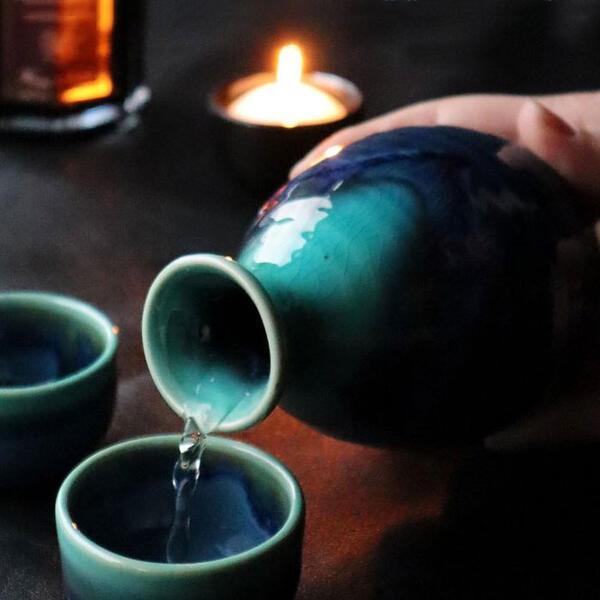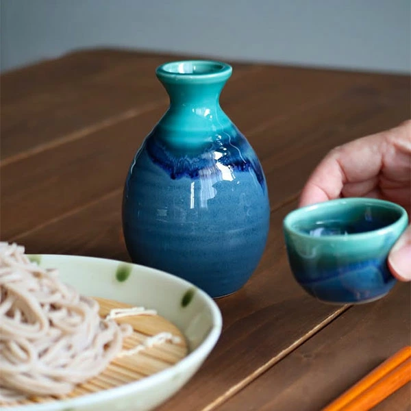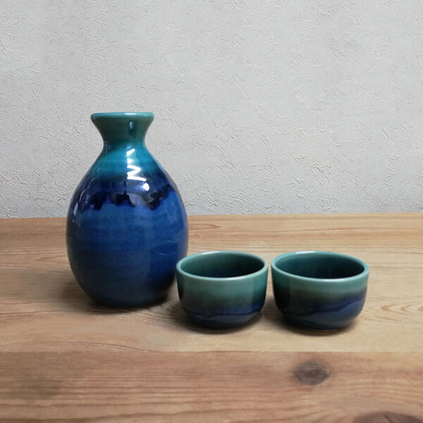 這款由AWASAKA推出的土耳其藍均窯酒器套裝,採用美濃燒磁器製造,表面呈現藍色漸層釉色,質感高雅,能突顯清酒或梅酒的色澤。套裝包含一支德利酒壺與兩個酒盃,酒壺容量約330ml,酒盃容量約50ml,大小適中,適合日常品酒或宴客使用。陶瓷材質堅固耐用,支援微波爐及洗碗機,方便清潔與加熱。每件酒器均由工匠製作,釉色自然流動,展現獨特的手工質感👍🏻