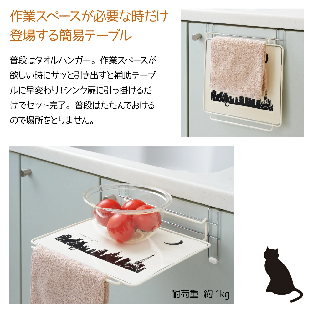 🔥🔥【日本製《吉川》摺疊式廚櫃門掛輔助桌】貓咪款 🇯🇵🇯🇵日本製造🇯🇵🇯🇵 於可直接掛於廚櫃門,平時可作為毛巾掛架,需要時只需拉出即可成為輔助桌,提供額外的操作空間。桌面採用鋼材並經聚酯樹脂粉體塗裝,具備耐用及易清潔特性;本體以鋼材鍍鉻加工,結構穩固,並配有矽膠緩衝墊,避免刮花櫃門。摺疊後厚度僅約7.3cm,收納方便,不佔空間,特別適合香港家庭的狹小廚房環境👍🏻 材質:鋼(聚酯樹脂粉體塗裝) 使用時尺寸:約寬25 × 深30 × 高10.6cm 摺疊時尺寸: 約寬25 × 深7.3 × 高28.5cm 掛鉤內寸:約2.6cm 重量:約455g 耐荷重:約1kg 產地:日本 💢如沒註明【現貨】訂貨需時約3-4星期 ___________________________________________ 💬 唔想錯過最新產品資訊及優惠歡迎加入我哋Whatsapp群組: https://chat.whatsapp.com/IJFfq1i7kMz46Zjc1NSXQF ___________________________________________