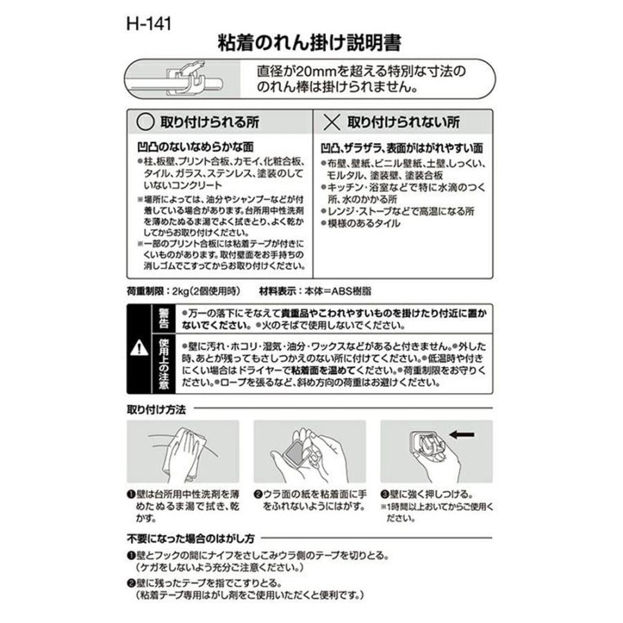 🔥🔥【日本製《LEC》強力粘貼式門簾掛鉤】 🇯🇵🇯🇵日本製造🇯🇵🇯🇵 採用強力粘著膠帶安裝,無需打孔即可穩固固定於牆面或門框。內置強力彈簧結構,能牢牢夾住門簾杆,避免滑落,並支援承重最高約2kg,適合家庭日常使用。掛鉤可安裝於多種平滑材質表面,包括木板、玻璃、瓷磚、不鏽鋼及塗層合板,靈活度高;同時避免破壞牆面,適合租住空間或不便施工的環境👍🏻 使用方法:先以中性洗劑清潔並擦乾安裝位置,撕去背膠保護紙後將掛鉤緊壓於牆面,靜置至少一小時後再掛上門簾杆。若需拆除,可利用刀片或膠帶去除殘留膠痕。安裝時避免選擇凹凸或潮濕表面,以確保穩固。 適用於直徑2mm或以內的掛杆 材質:本體/ABS樹脂;粘著面/壓敏性粘著劑;彈簧/不鏽鋼 尺寸:約寬25 × 深30 × 高45mm(單件) 重量:約49g(2個入) 承重:2kg(兩個掛鉤合計) 產地:日本 💢如沒註明【現貨】訂貨需時約3-4星期 ___________________________________________ 💬 唔想錯過最新產品資訊及優惠歡迎加入我哋Whatsapp群組: https://chat.whatsapp.com/IJFfq1i7kMz46Zjc1NSXQF ___________________________________________