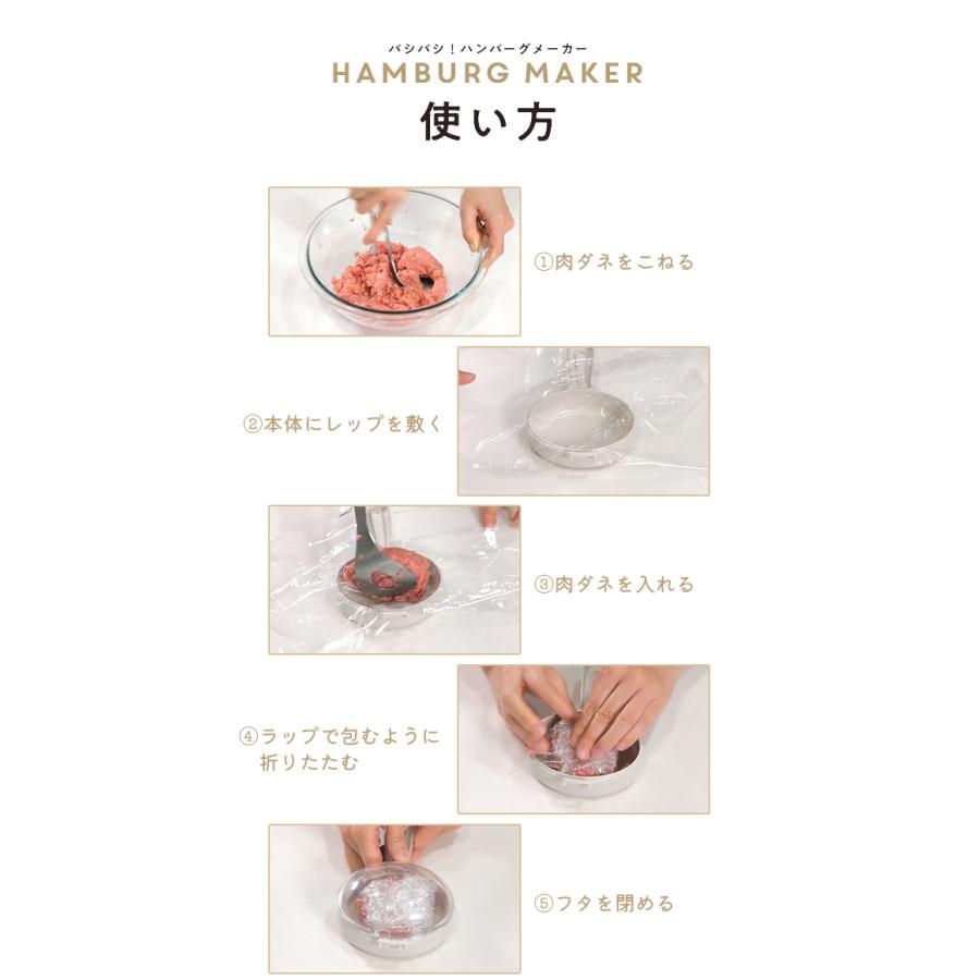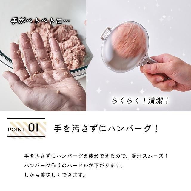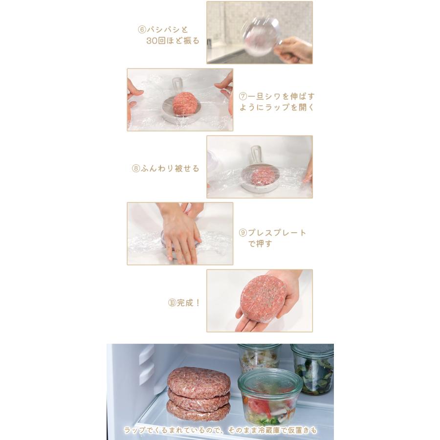 設計用來快速製作大小一致的漢堡扒,操作簡單又衛生。只需將肉餡放入並配合保鮮膜使用,透過搖動即可把肉餡中的空氣排出並壓實,避免手直接接觸肉餡,減少溫度影響,令漢堡扒保持緊實不易散開,煎煮時更能鎖住肉汁,口感更佳。產品可製作兩種尺寸,無論家庭聚餐或小食份量都能輕鬆應付,讓烹飪更省時省力👍🏻